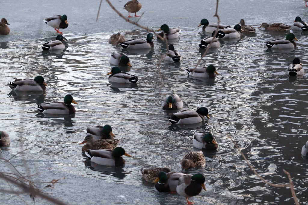 If you walk around Palmer Lake in the winter time you will find these crabby ducks. There are about 30 male and female mallards all huddled up in a pond that is eighty percent frozen. All winter you will hear them just quack over and over. They are always making a lot of noise and are fighting with each other because it’s cold.