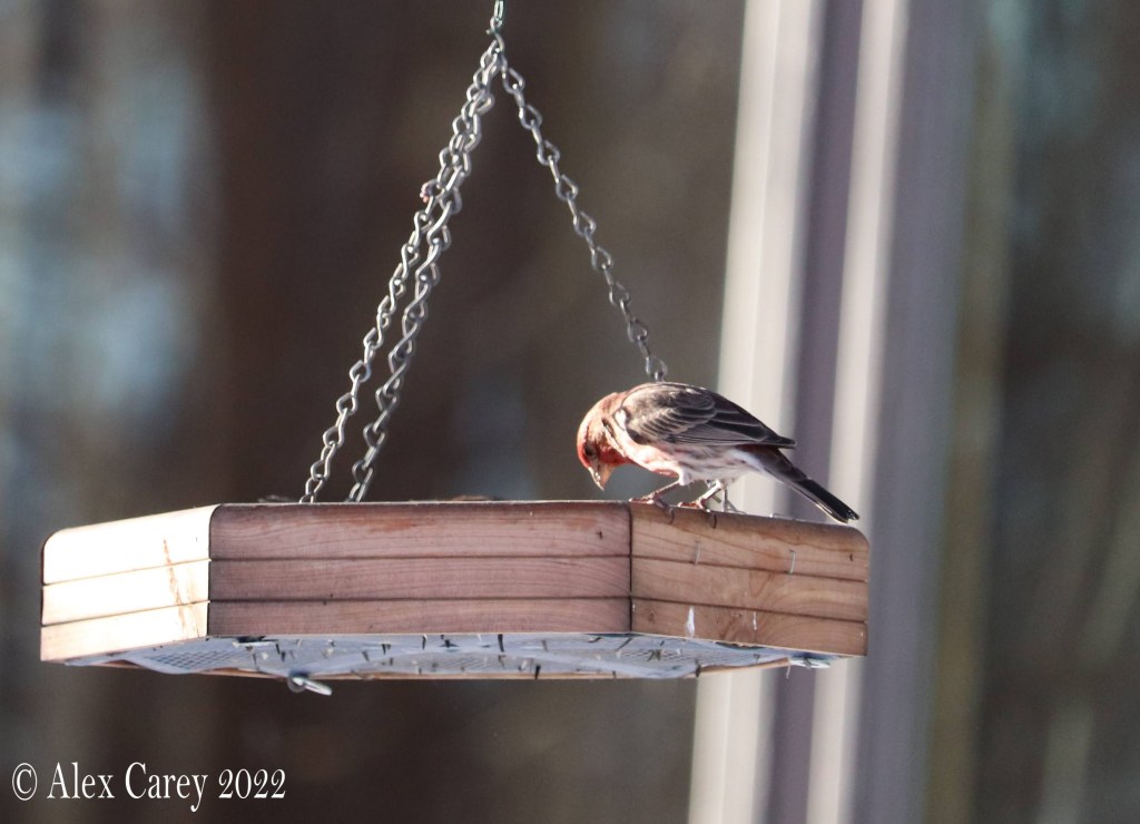 This is a House Finch. The House Finch can be a common bird feeder. Did you know?