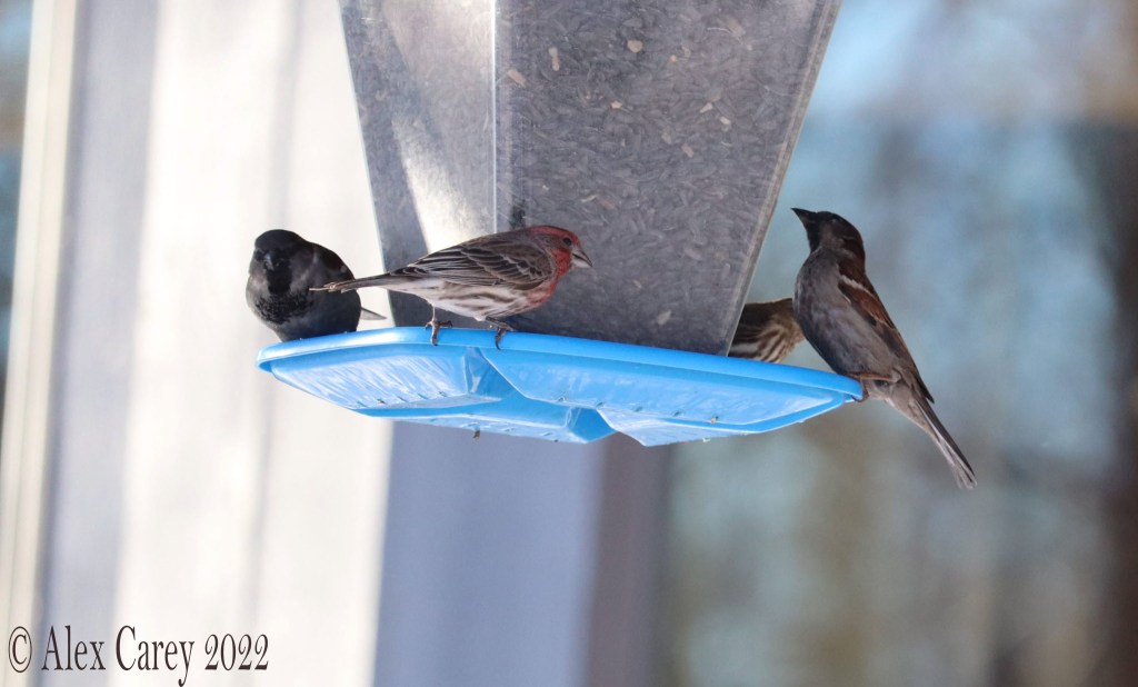 “The House Finch was originally a bird of the western United States and Mexico. In 1940 a small number of finches were turned loose on Long Island, New York, after failed attempts to sell them as cage birds (“Hollywood finches”). They quickly started breeding and spread across almost all of the eastern United States and southern Canada within the next 50 years.”