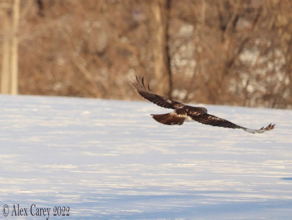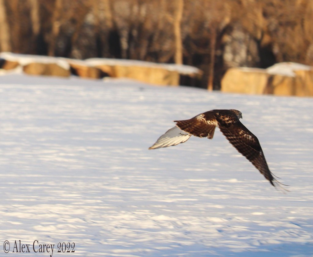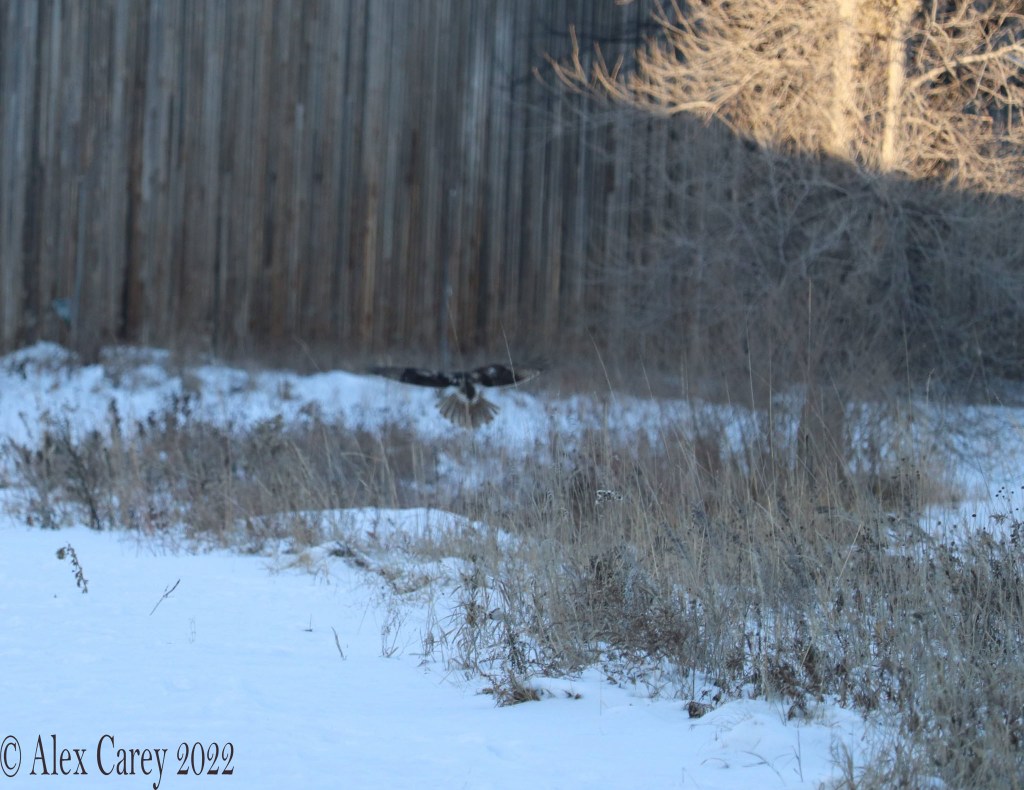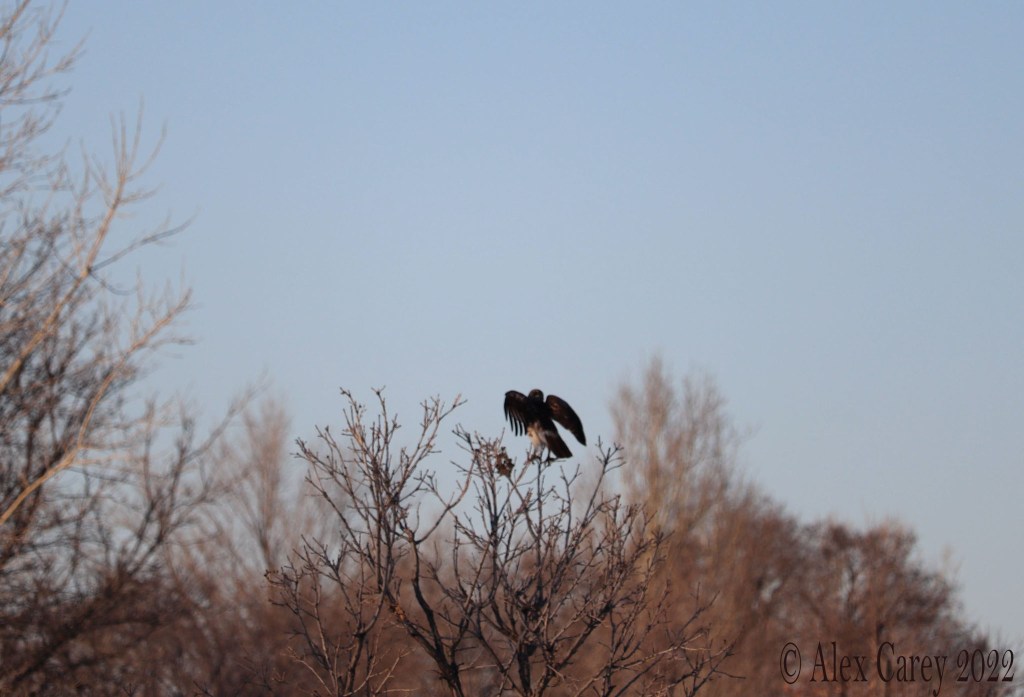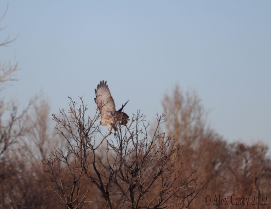 I also saw a Red-tailed Hawk catch a mouse. Seeing a Hawk hunt a mouse was pretty amazing. When I was trying to take pictures of the Hawk eating the mouse, it started flying away. A Hawk can eat 6-8 mice a day. But can also eat small mammals, small birds, and reptiles.