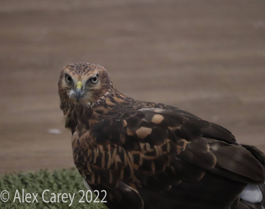 This is a female Northern Harrier. It was refusing to take a bath when I was taking pictures of it. I have never seen a Northern Harrier before so it was cool to see one.