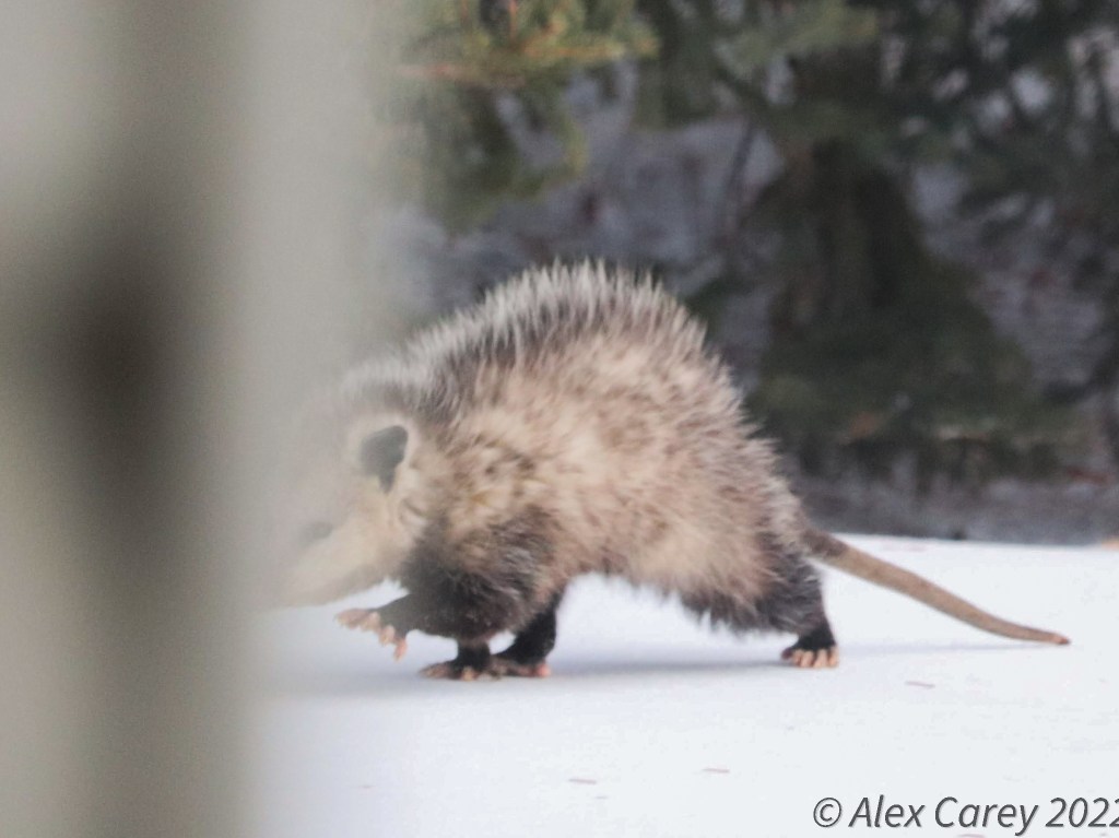 Last week I saw a Virginia Opossum walking in my yard when it was freezing cold outside. I have never seen an opossum in my yard before, so it was amazing to witness. Virginia opossums are marsupials and generally live 1- 4 years. Marsupials are a type of mammal that have pouches for their young until they are mature. It’s not unusual to see the babies riding on their mom’s back too!
