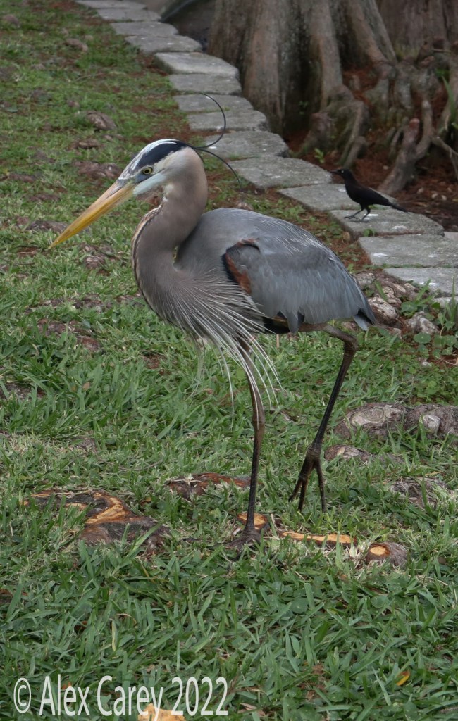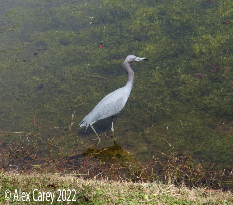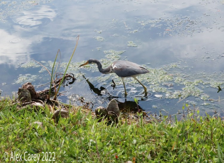 Celebration Florida- I explored Celebration Florida and walked around the area, hoping to get some pictures of the wildlife. The town of Celebration was founded by Disney in 1996. I saw two gators, an anhinga and different species of herons. An interesting fact about egrets, is that they are a type of heron. The Little blue heron is different than the Great blue heron. At the end of my walk I saw the Little blue heron next to a softshell turtle. Softshell turtles are common in lakes in Florida.